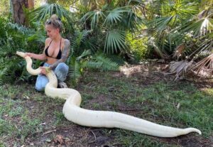 “Honestamente no nos lo tomamos demasiado en serio, ya que la gente identifica erróneamente a las serpientes todo el tiempo y como no la habían visto en un par de horas, no fuimos a buscarla. Nos contactaron al día siguiente y nos enviaron una foto de una gran serpiente blanca en su jardín”, contó la chamaca Taylor Short, de la empresa que cachó y sacó a la boa del jardín.